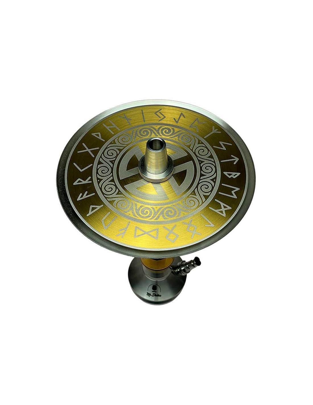 La Mr. Shisha Valhalla está fabricada en acero inoxidbale V2A y cuenta con un doble plato con grabados vikingos.