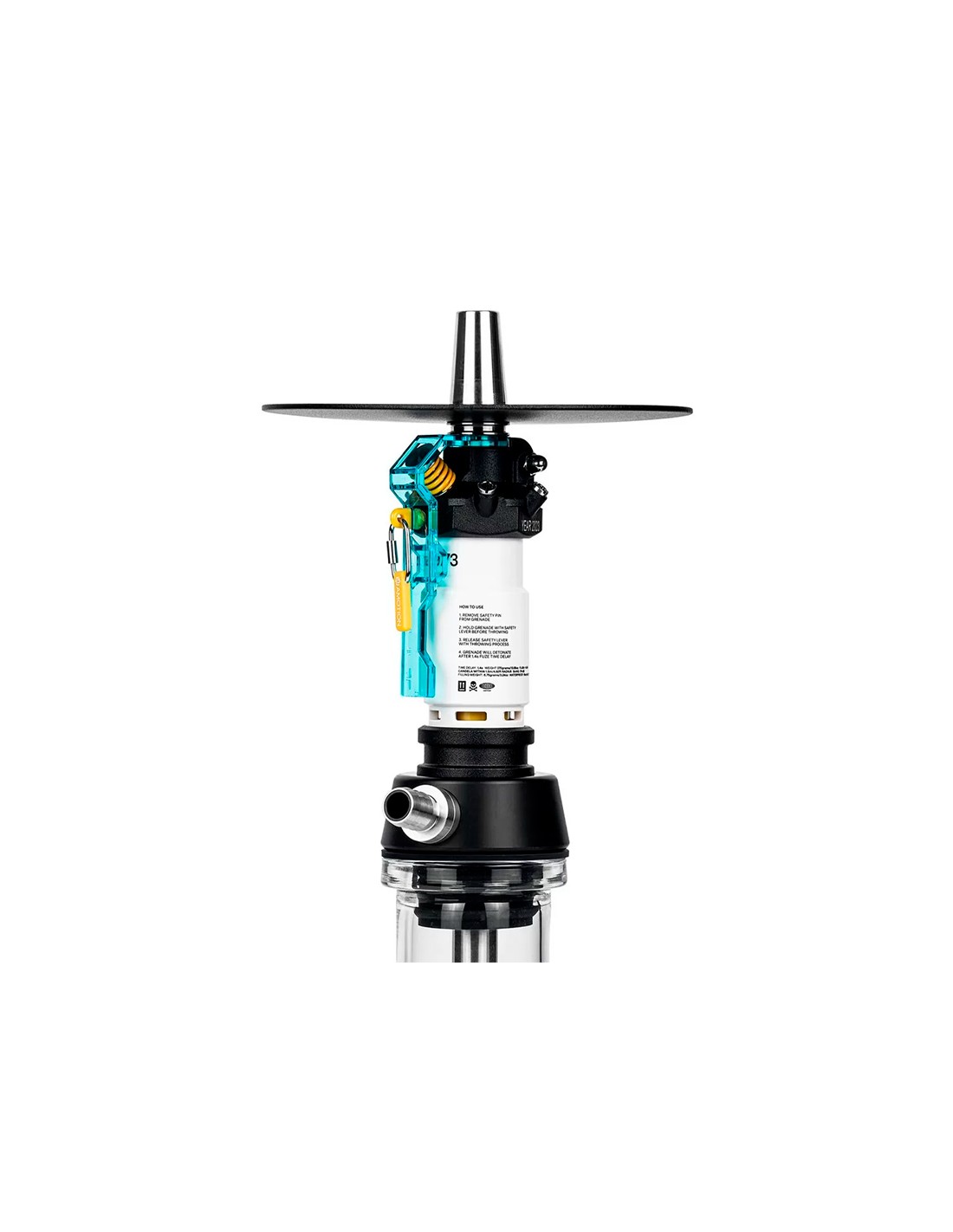 Esta shisha está fabricada en acero inoxidable de alta calidad, aluminio y policarbonato entre otro materiales.