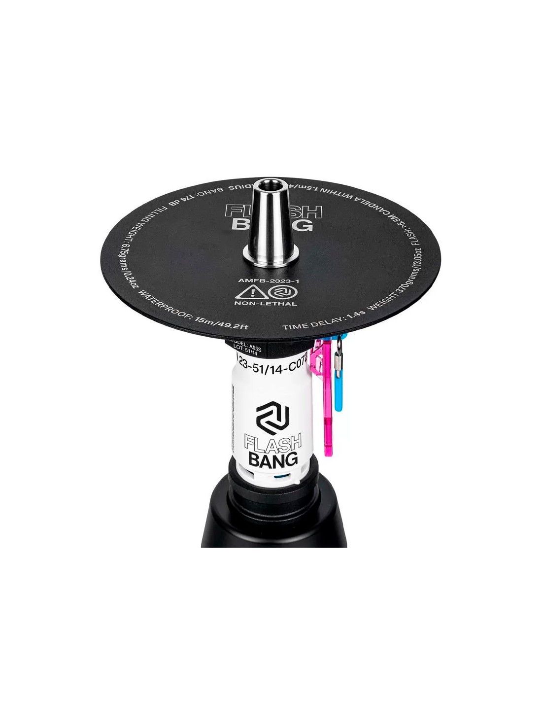 En su estética podrás reconocer una anilla de granada y grábados láser en el plato con el logo e ilustraciones de Flash Bang.