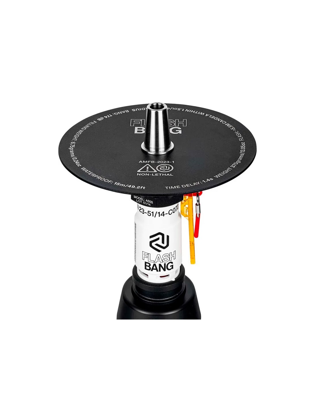 En su estética podrás reconocer una anilla de granada y grábados láser en el plato con el logo e ilustraciones de Flash Bang.