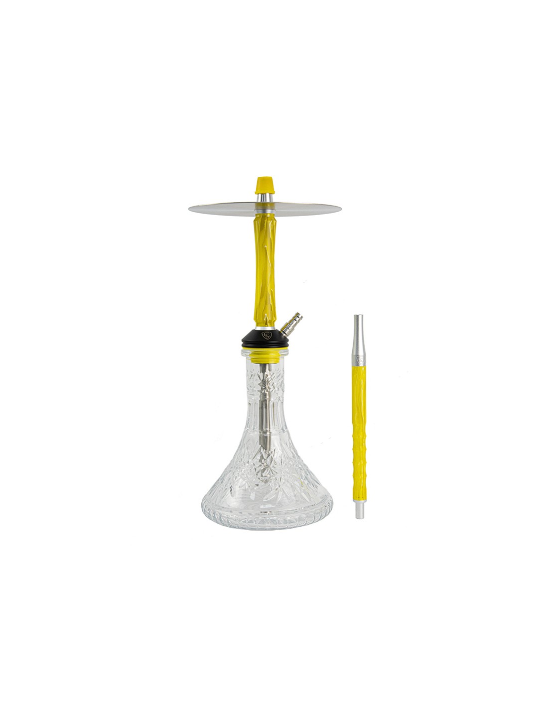 Esta cachimba destaca por los embellecedores de resina que recubren su mástil y que van a juego la boquilla.