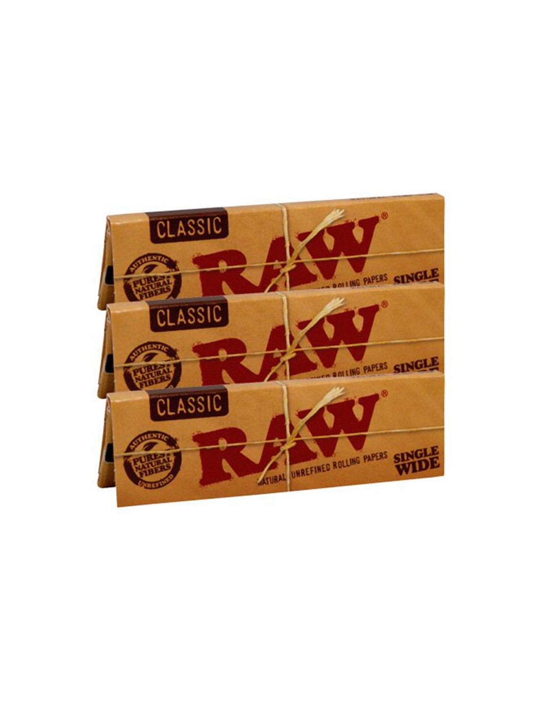 Papel Raw Single Wide Classic, contiene cincuenta hojas por librito de papel 100% libre de cloro y sin blanquear.